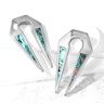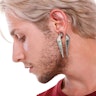 Tomuto typu hangeru se říká keyhole hanger, protože tvarem připomíná klíčovou dírku. Obě strany hangeru jsou ozdobeny paua perletí, a nezáleží tedy na tom, do kterého ucha jej zavěsíte. Paua perleť je organický materiál, a můžete tedy očekávat, že se barva na jednotlivých kouscích bude lehce lišit od obrázku.