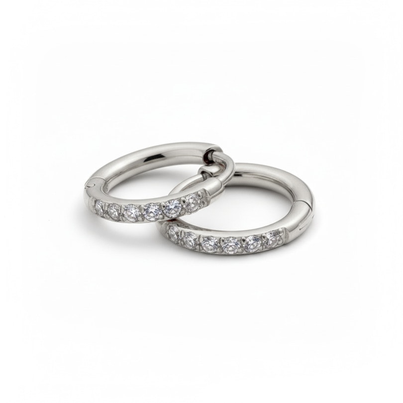 Pár huggie kroužků z chirurgické oceli s kamínky