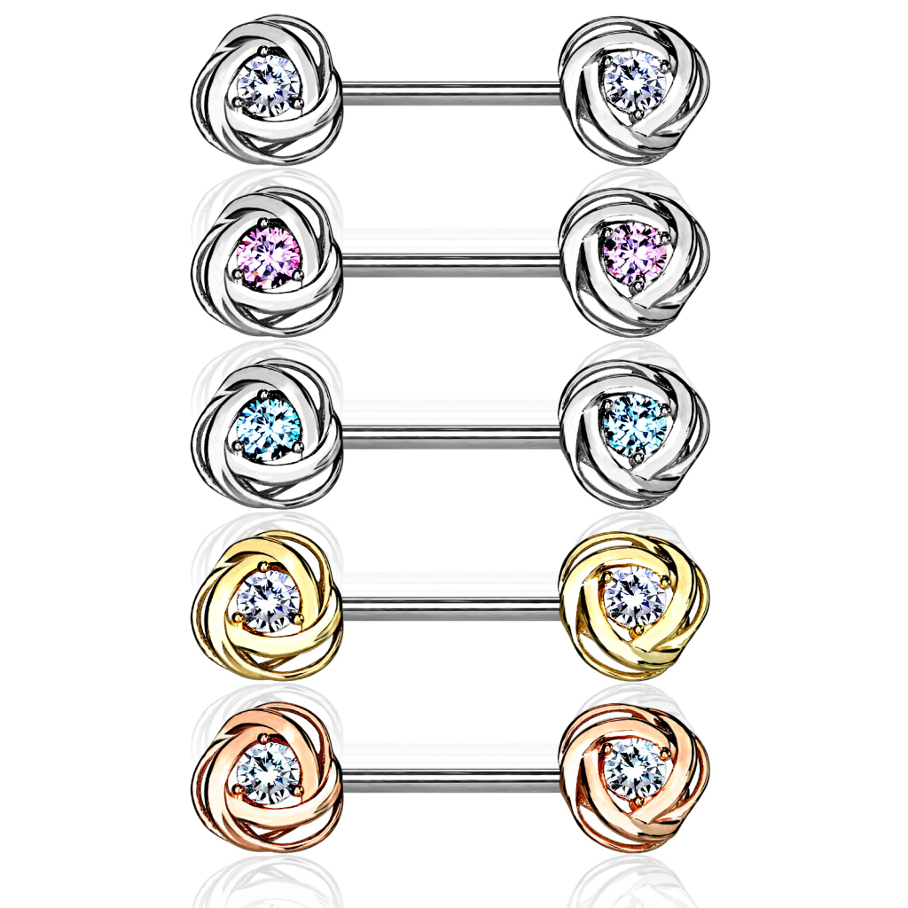 U tohoto piercingu si můžete zvolit nejen barvu kovu, ale i barvu kamínku na něm. Můžete si tedy vytvořit šperk speciálně pro Vás. Pokud si zvolíte stříbrné provedení piercingu, kamínek je Vám k dispozici na výběr v tyrkysové, růžové či čiré barvě. Pokud si zvolíte zlatý nebo růžovo-zlatý model, kamínek bude čirý.
