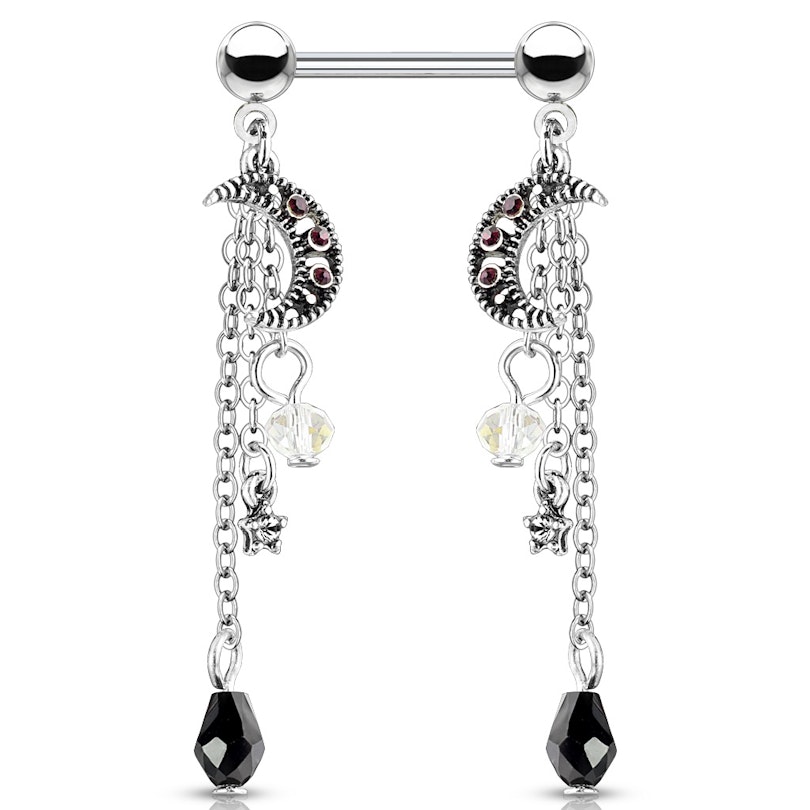 Piercing do bradavky s řetízky, měsíčky a hvězdičkami