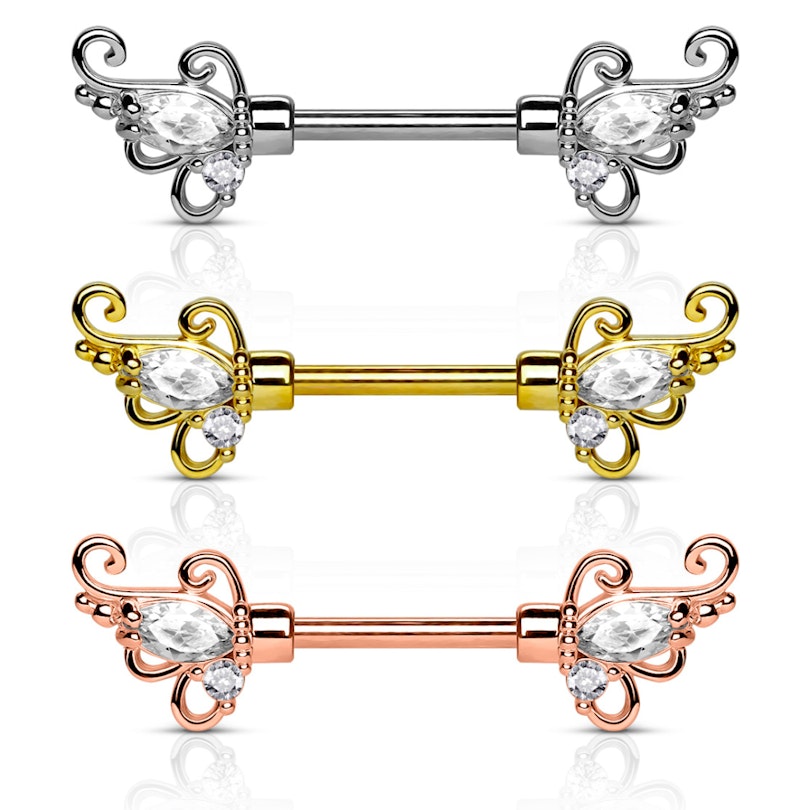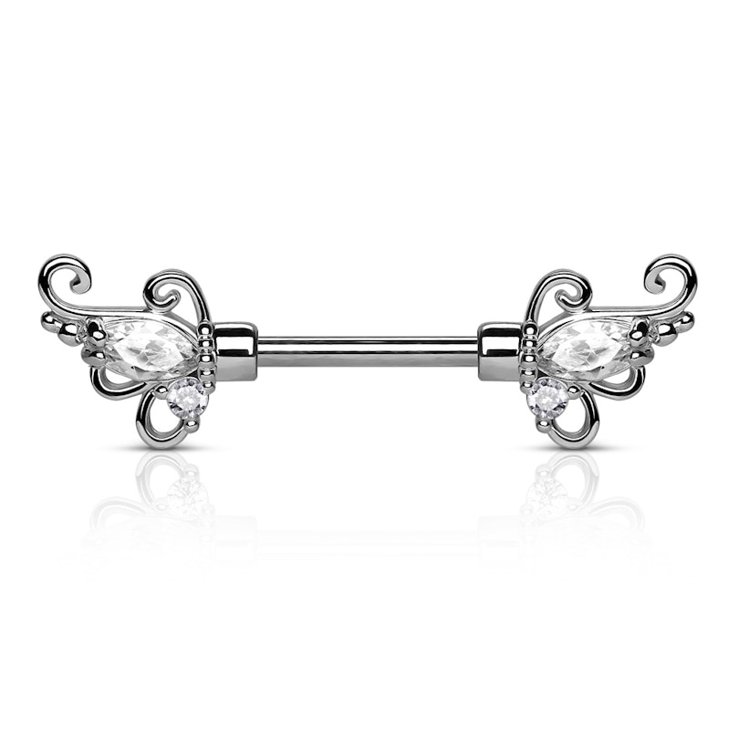 Název: Piercing do bradavky s vlnitými detaily a kamínky