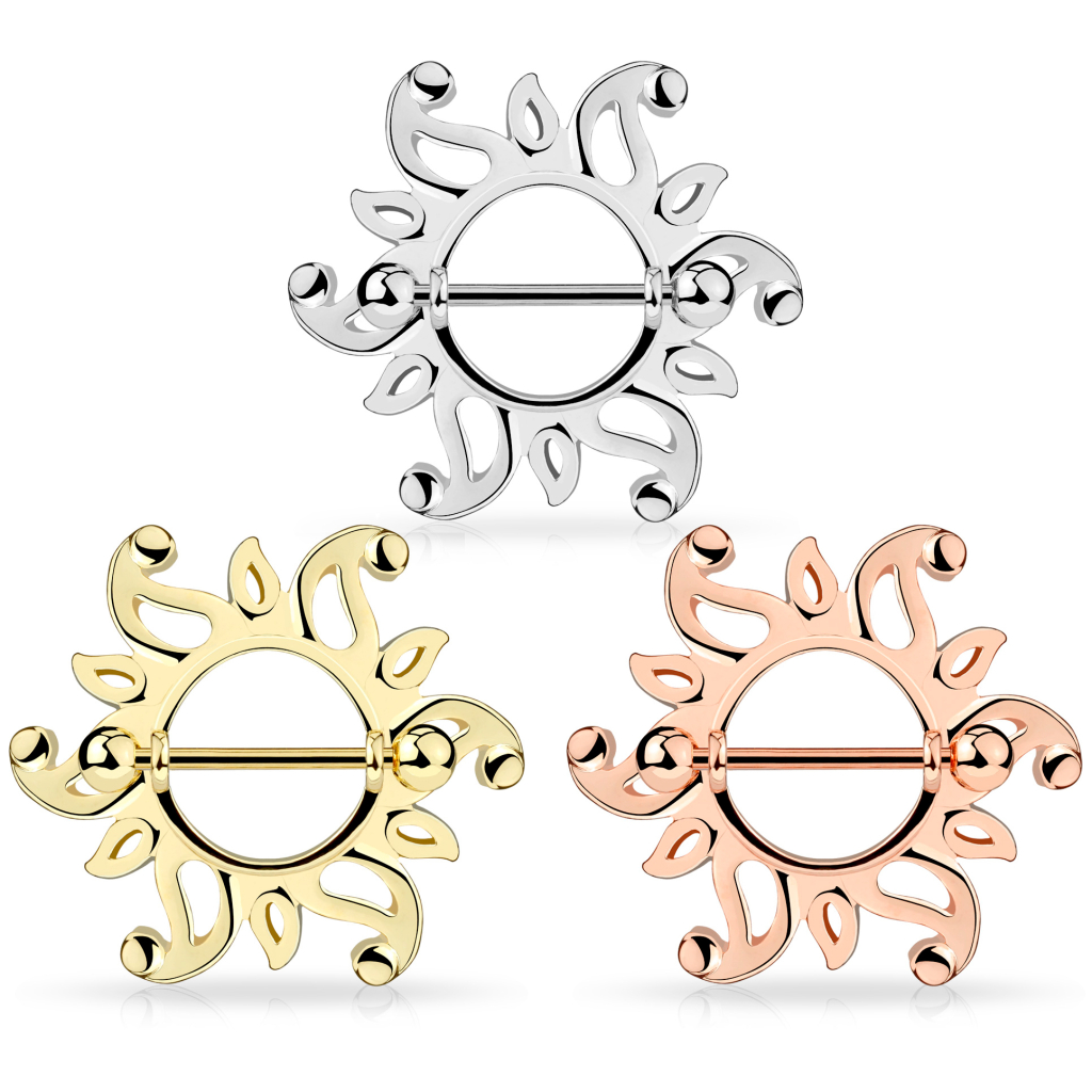 Název: Piercing do bradavky se štítem ve tvaru slunce se zvlněnými konci