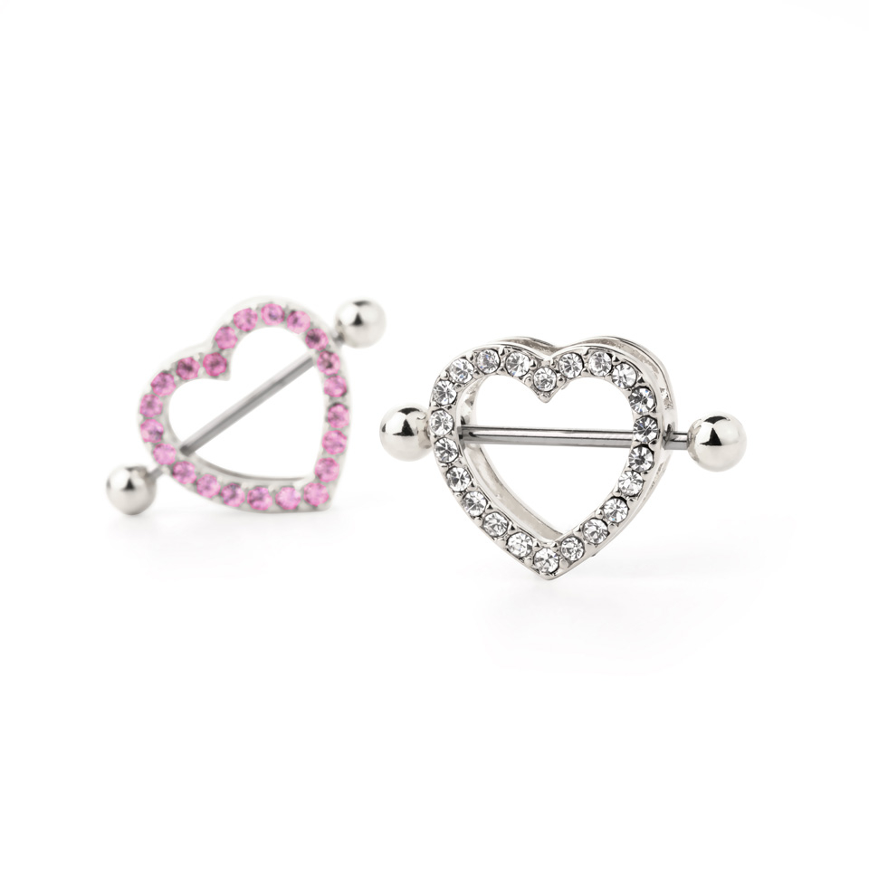 Piercing do bradavky se štítem ve tvaru srdíčka s kamínky
