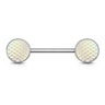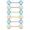 Zbytek šperku je vyroben z chirurgické oceli, včetně dvou plochých kuliček. Barvu tyčinky si můžete sami vybrat: je dostupná například v barvě žlutého nebo červeného zlata.