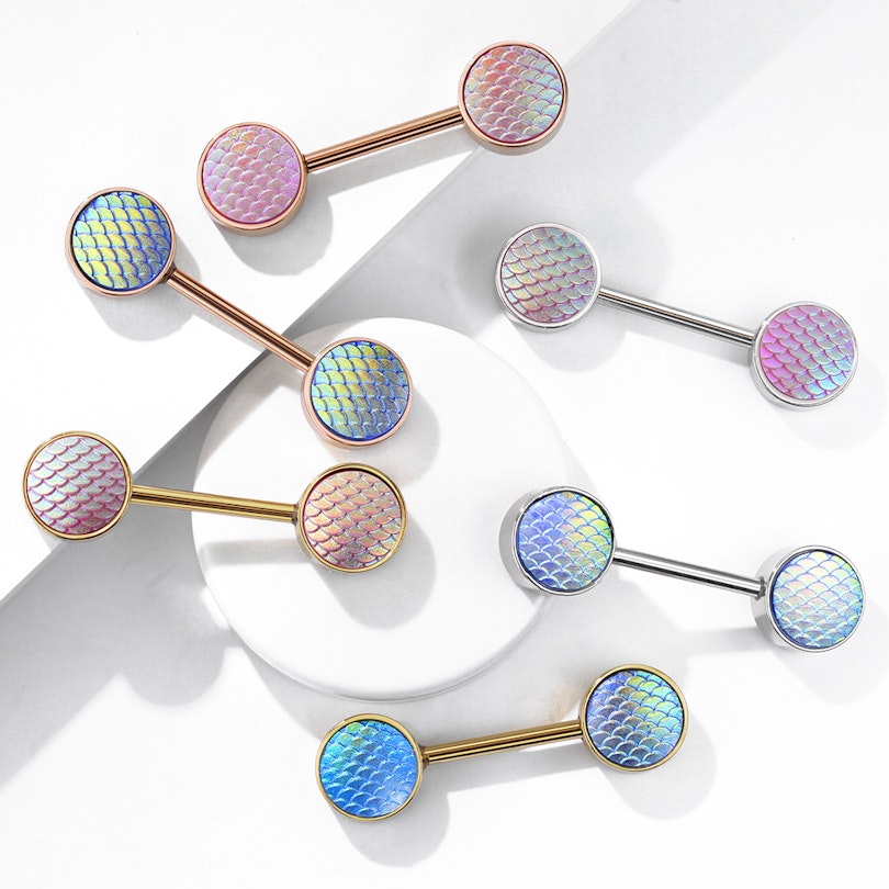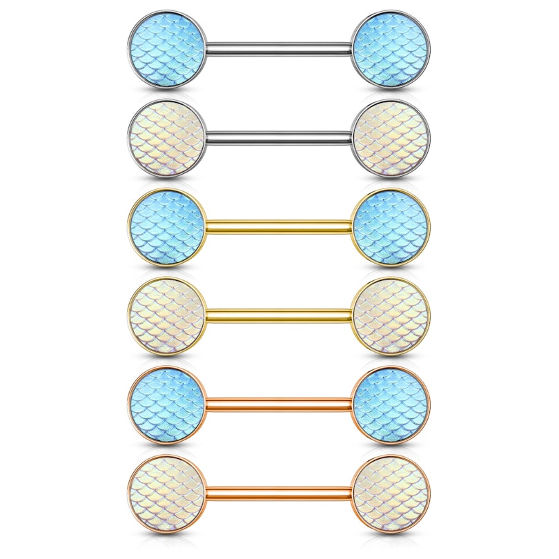 Název: Piercing do bradavky se šupinami měnícími odstín