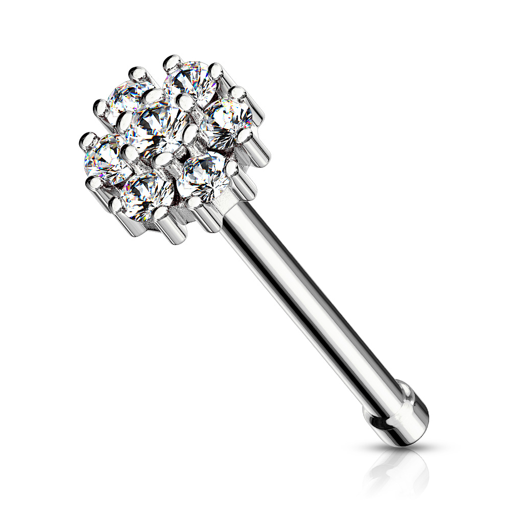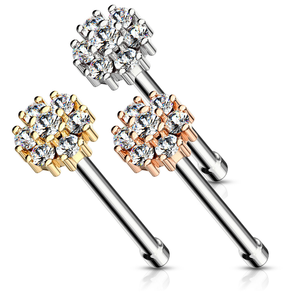 Piercing do nosu s kulatým topem a mnoha kamínky
