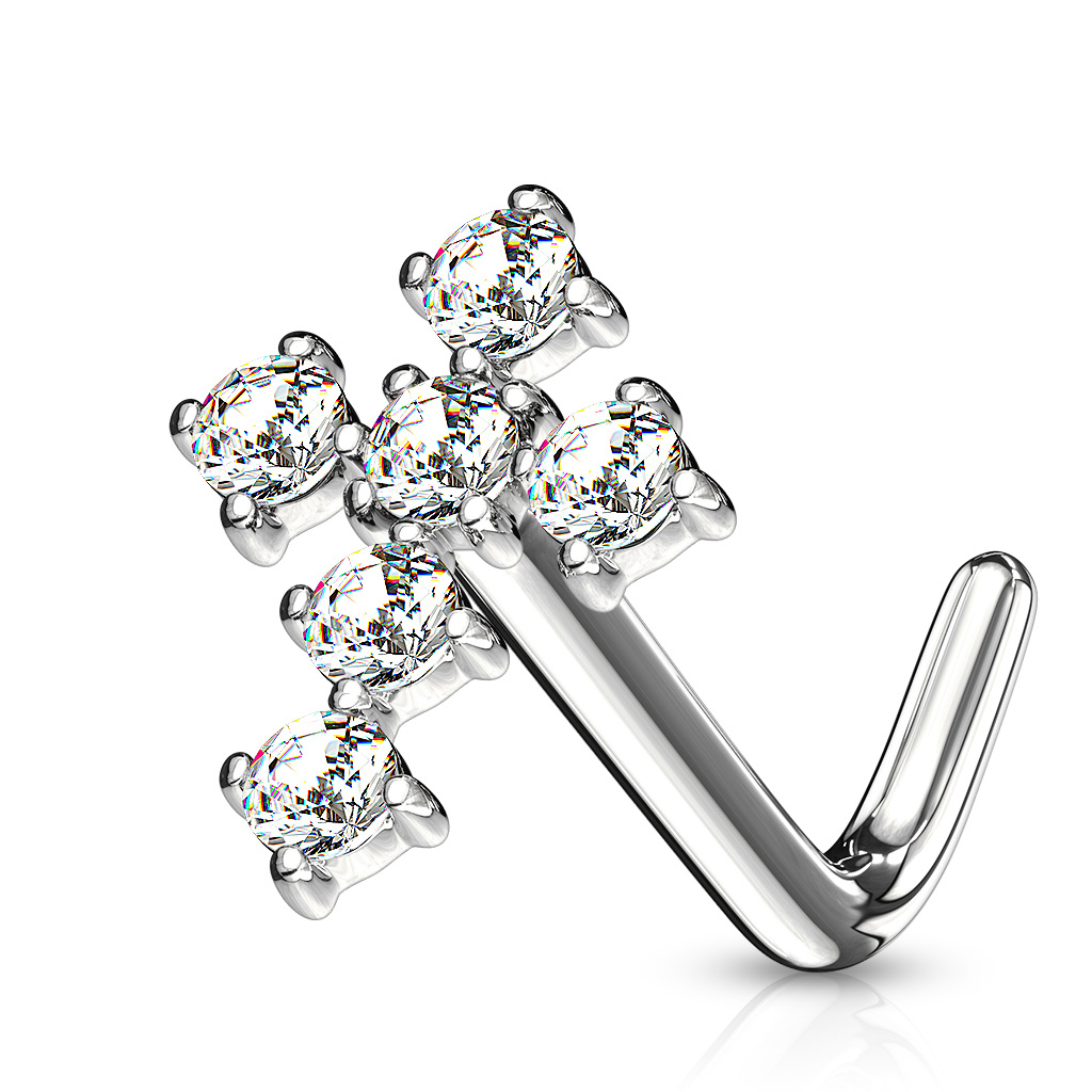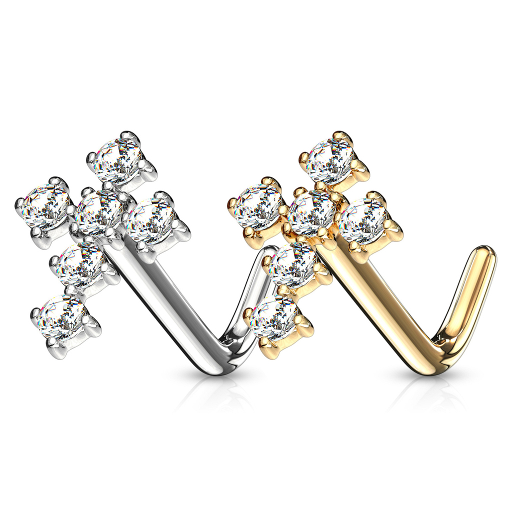 Piercing do nosu zahnutý do "L" s křížkem z kamínků