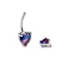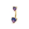 Tenhle piercing do pupíku je zdoben dvěma roztomilými srdíčky, které vypadají buď růžově nebo fialově, v závislosti od světla a úhlu pohledu. V horní části je menší srdíčko s 6 mm a v spodní části je větší srdíčko s rozměrem 7,5 mm.
