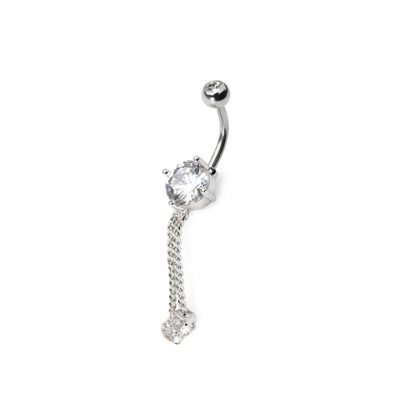 Tento krásný šperk do pupíku je opravdu výjimečným kouskem. Řetízek je zakončený malými kamínky, což dodává tomuto šperku eleganci a pohyb, díky čemuž je opravdu jedinečný. Tím, že je vyrobený z chirurgické oceli máte jistotu odolnosti a pohodlí. Činka je 10 mm dlouhá a její tloušťka je 1,6 mm. Řetízky jsou dlouhé 28 mm a je to měřeno od hlavního kamínku. Na výběr máte mezi zlatou, stříbrnou a červenozlatou. Kamínky budou vždy čiré. Tento šperk do pupíku je dokonalým doplňkem a dodá vašemu vzhledu jiskru.