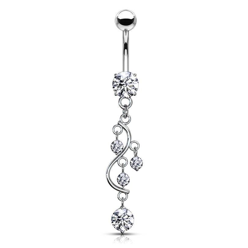 Představujeme Vám krásný a velice elegantní piercing do pupíku, jehož design se zalíbí všem, kdo hledají něco opravdu jedinečného. Tento šperk je vyroben z chirurgické oceli, což je velmi kvalitní materiál, který ze sebe nevypouští žádný nikl, a je tedy velmi vhodný i pro ty z Vás, kdo mají na nikl alergii.