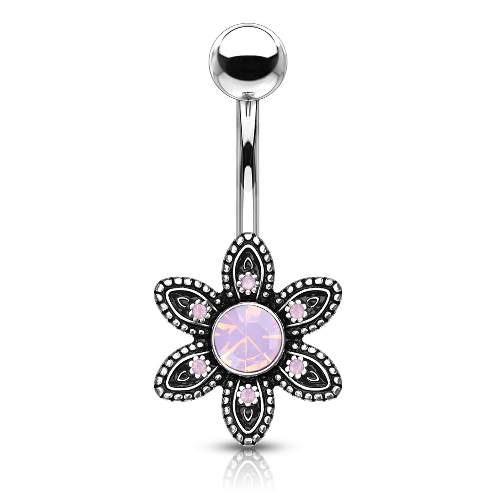 Název: Piercing do pupíku s květinou a opality