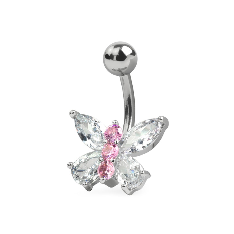 Piercing do pupíku s motýlem z krystalů