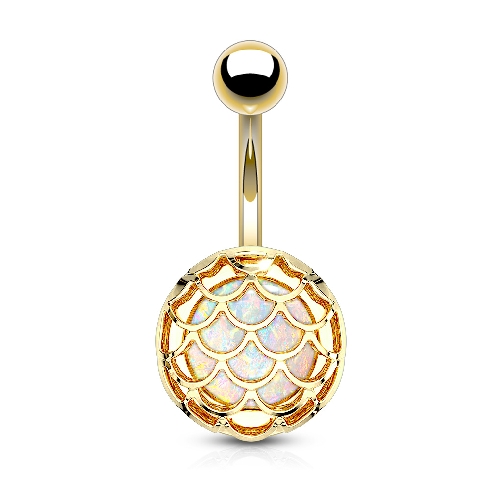 Název: Piercing do pupíku s opálovým kamínkem a šupinovým designem