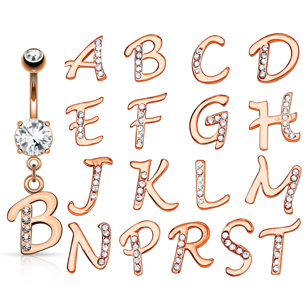 Název: Piercing do pupíku s písmenem zdobeným kamínky