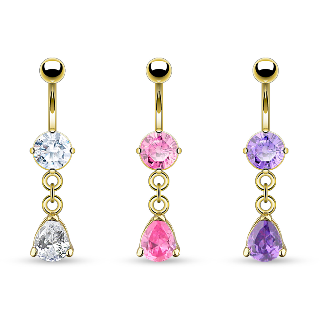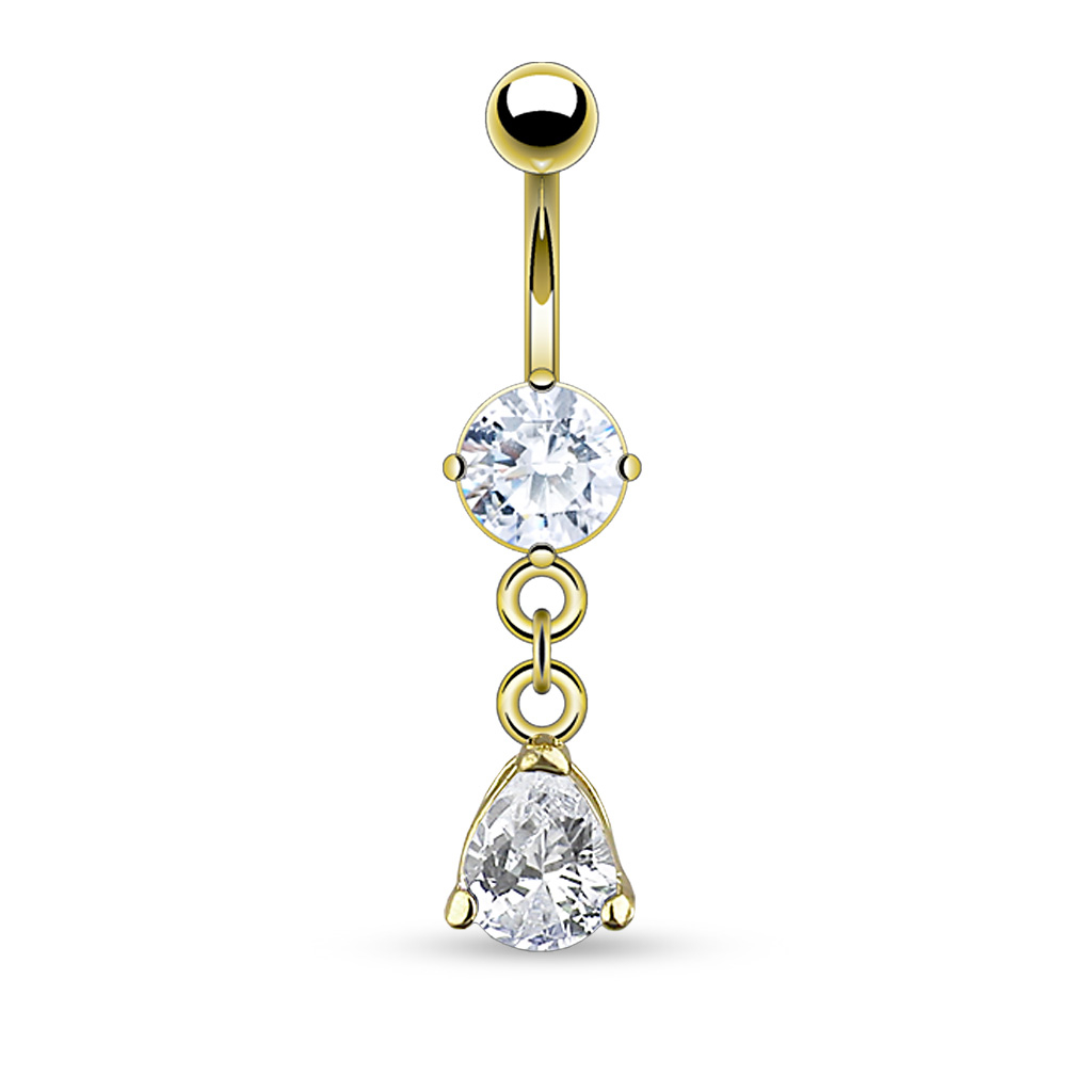 Piercing do pupíku s přívěskem ve tvaru kapky a s kamínky
