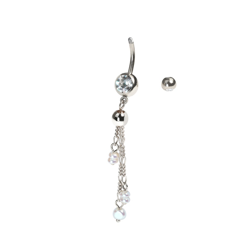 Piercing do pupíku s řetízky a perlami
