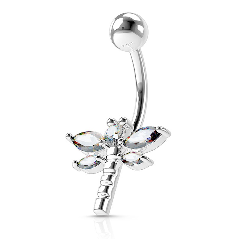 Roztomilá vážka má krásné, podlouhlé kamínky na křídlech a také jeden na hlavičce. Vážka je na piercingovém kroužku usazena pod mírným úhlem, díky kterému působí přirozeněji. Jinými slovy, u designu této vážky bylo opravdu dbáno na detail, a můžete se tedy spolehnout, že budete příjemně překvapeni její krásou.
