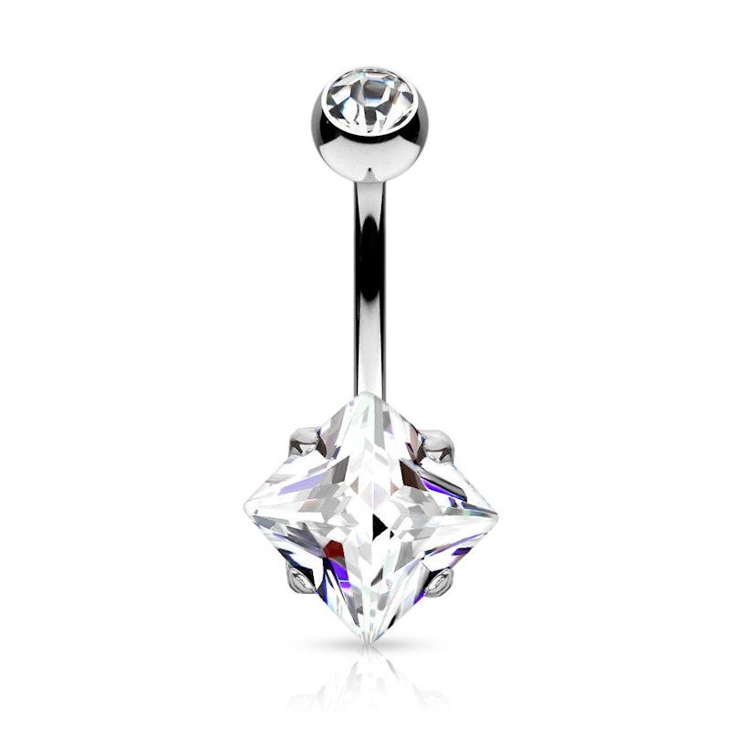 Název: Piercing do pupíku s velkým čtvercovým krystalem