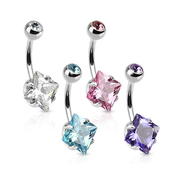 Piercing do pupíku s velkým čtvercovým krystalem