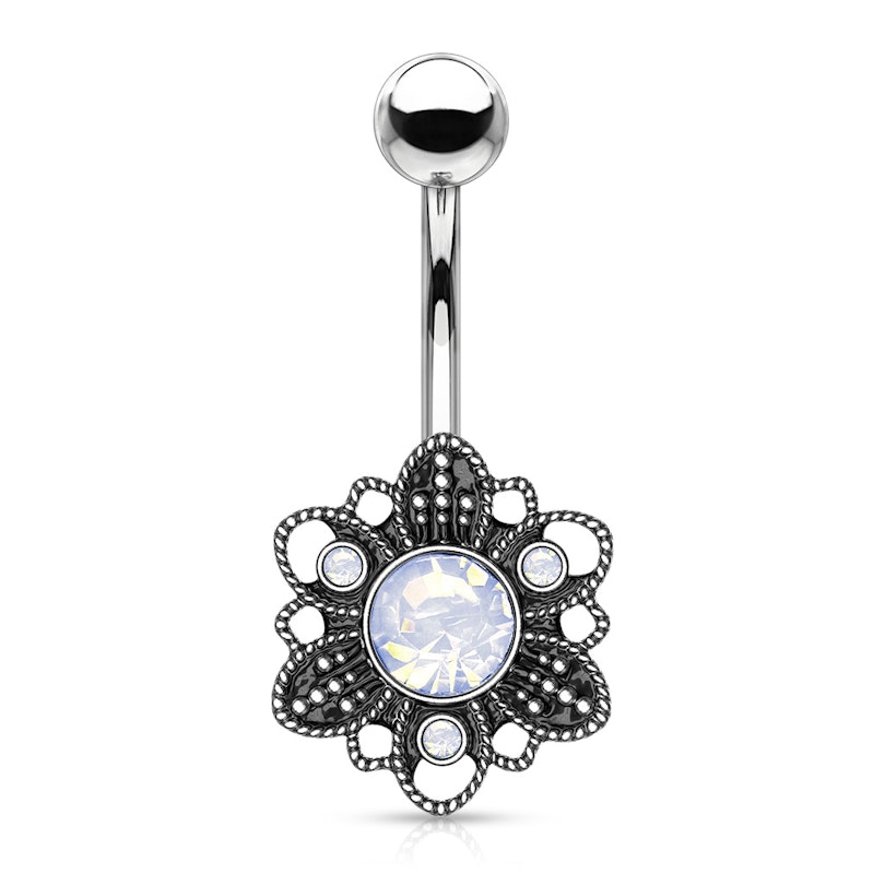 Název: Piercing do pupíku s vintage květinou a opality