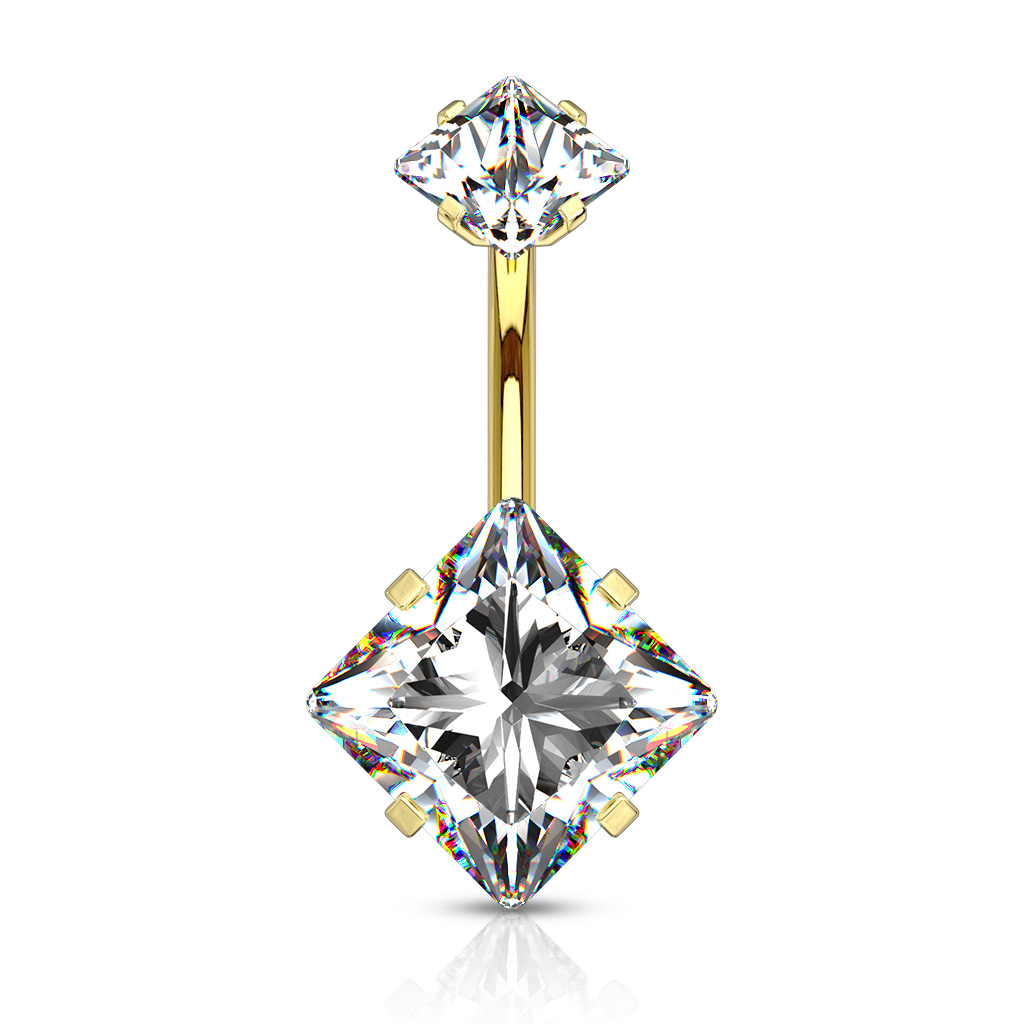 Hledáte čtvercové kamínky, které září tak moc jako hvězdy na obloze? To je přesně to, co tento piercing do pupíku představuje! Dokonce jej můžete získat v barvě dle vašeho výběru. Nahoře na této stránce uvidíte všechny dostupné barvy kamínku - vyberte si takovou, která se vám nejvíc líbí.