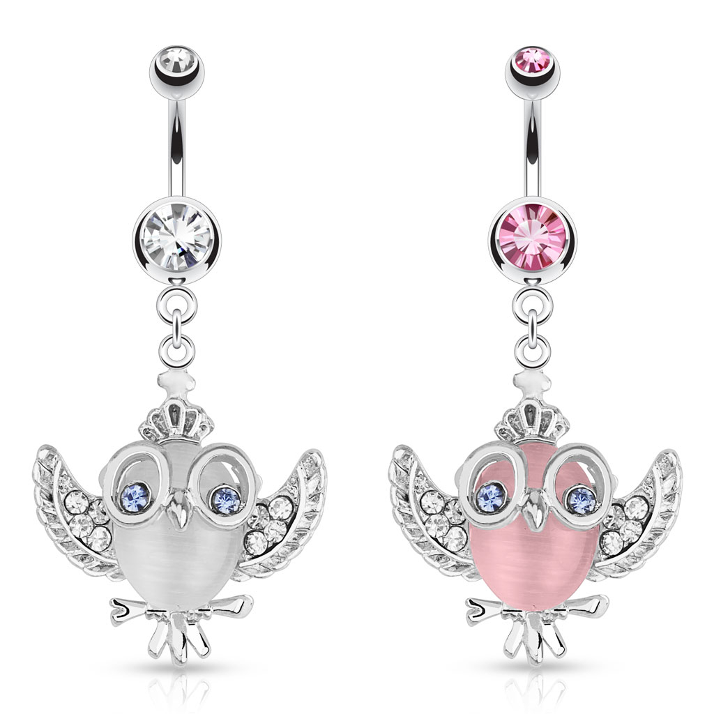 Nejspíš se Vám nepodaří najít roztomilejší či delikátnější piercing do pupíku, než je tento krásný kousek s úžasnou sovičkou na přívěšku. Piercing je vyroben z chirurgické oceli, a tvořen 10mm dlouhou tyčinkou, která je zakončená kuličkami s kamínkem v barvě dle Vaší volby.