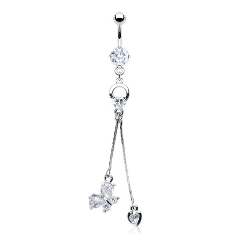 Název: Piercing do pupíku se srdíčkem a motýlem