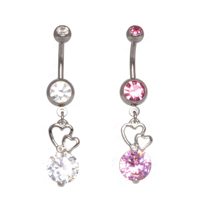 Ozdobte si tedy tímto krásným kouskem Váš pupík! Je k dispozici ve dvou barevných provedeních, a ať už si zvolíte jakoukoliv barvu, dostanete překrásný šperk ozdobený dvěma srdíčky nesoucími velký krystal, a horní a dolní kuličkou s kamínkem.