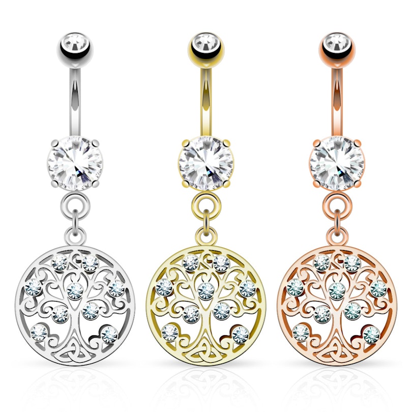 Nepropásněte tuto skvělou příležitost pořídit si nádherný piercing do pupíku, přímo nabitý symbolismem a delikátní krásou. Šperk je ozdoben přívěškem ve tvaru stromu života, uzavřeném v kruhu.