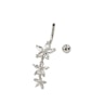 Tento piercing do pupíku má vše, co byste jen mohli chtít - kamínky i květiny. Kamínky jsou s květinami krásně zkombinované tak, že kamínky tvoří okvětní lístky květin. Celkem se na piercingu nachází tři květiny s pěti okvětními lístky. Horní květina je největší, a zbytek se postupně zmenšuje. Horní květina je navíc napevno uchycená na spodní kuličce piercingu, zatímco dvě další květiny jsou na ní zavěšeny,