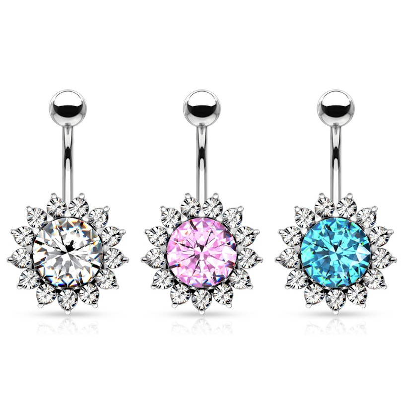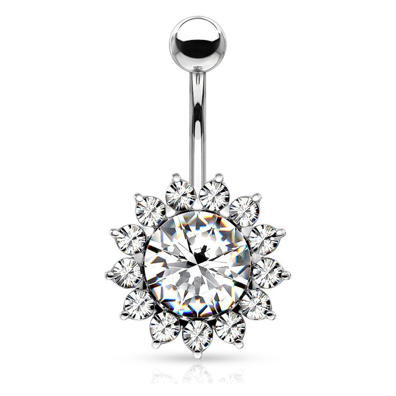 Piercing do pupíku ve tvaru slunečnice s kamínky