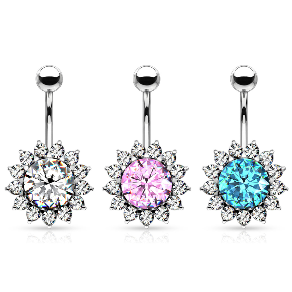 Piercing do pupíku ve tvaru slunečnice s kamínky