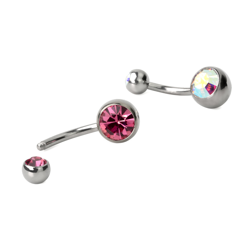 Piercing do pupíku z chirurgické oceli s kamínkem v různých barvách
