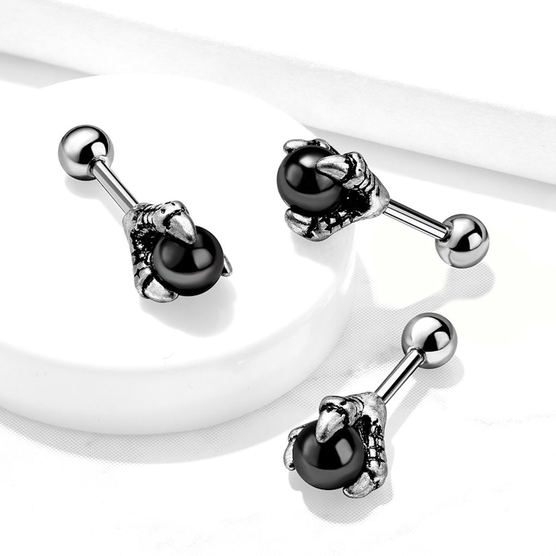 Název: Piercing do ucha s černou kuličkou a dračím drápem