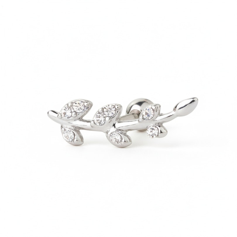 Název: Piercing do ucha s lístky zdobenými kamínky
