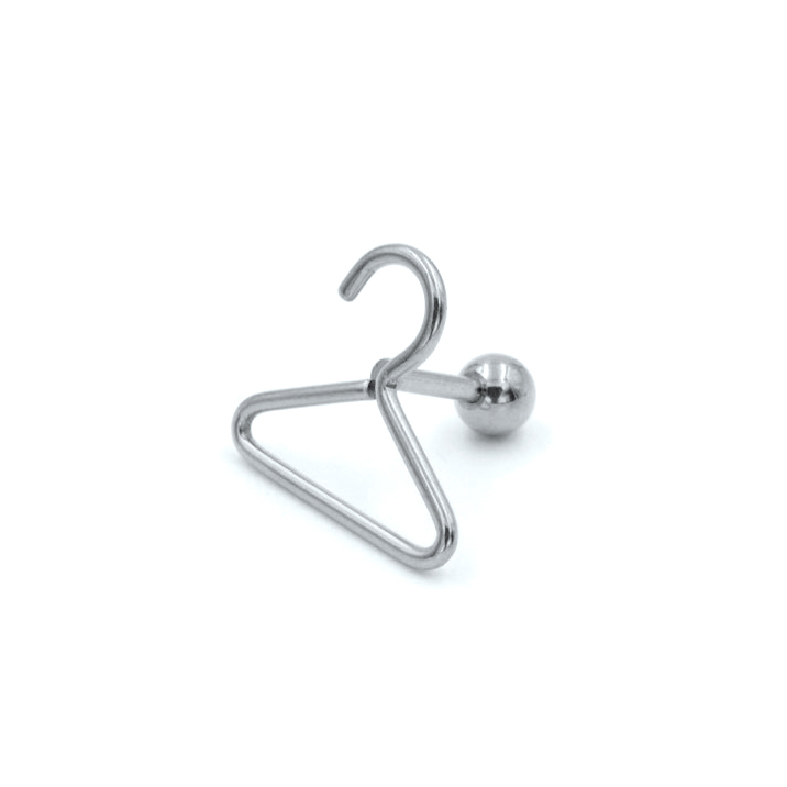 Možná Vás tato možnost ani nenapadla, ale máte teď příležitost pořídit si skvělý piercing do ucha ve tvaru ramínka na šaty. S tímto piercingem nikoho nepřekvapí Vaše záliba v oblečení a doplňcích. Tento piercing je tvořen kusem kovu, který byl vytvarován do tvaru věšáku na oblečení, které je 15mm široké a 13mm vysoké.