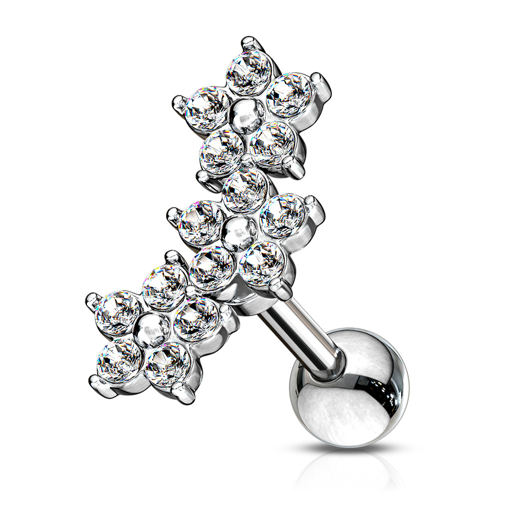 Piercing do ucha se 3 květinami z kamínků
