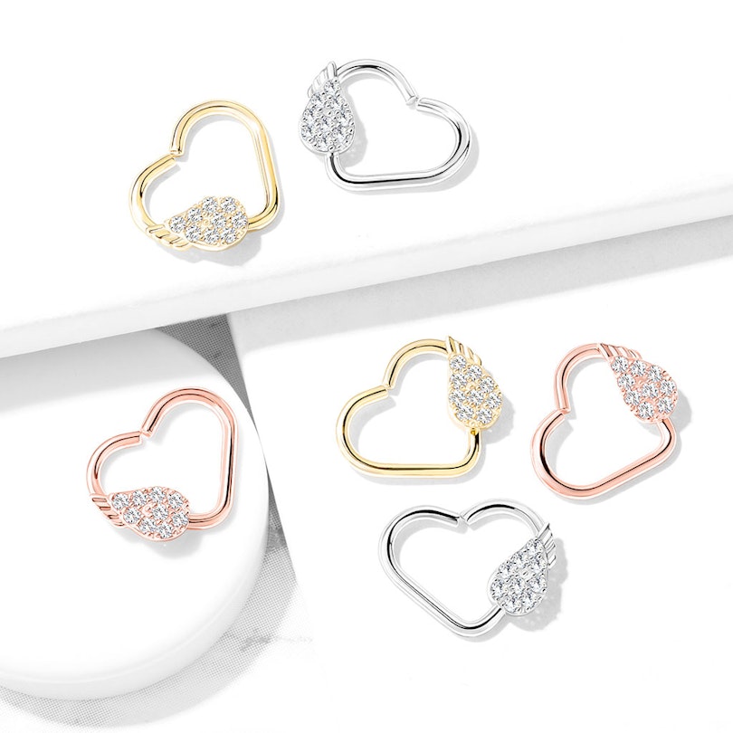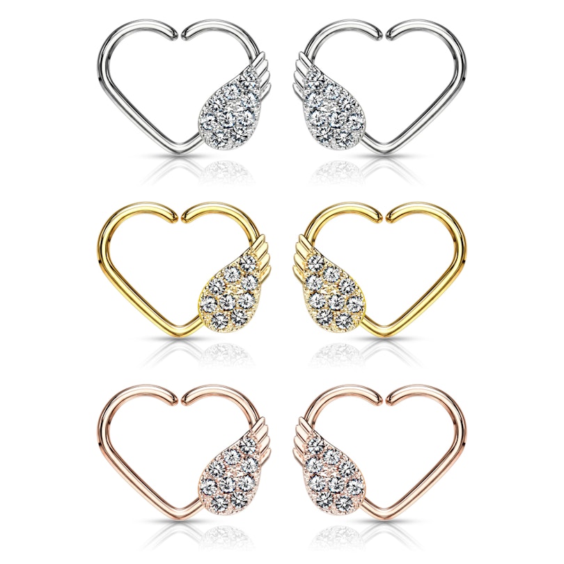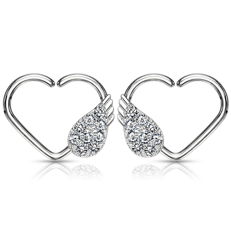 Piercing do ucha ve tvaru srdce s andělským křídlem