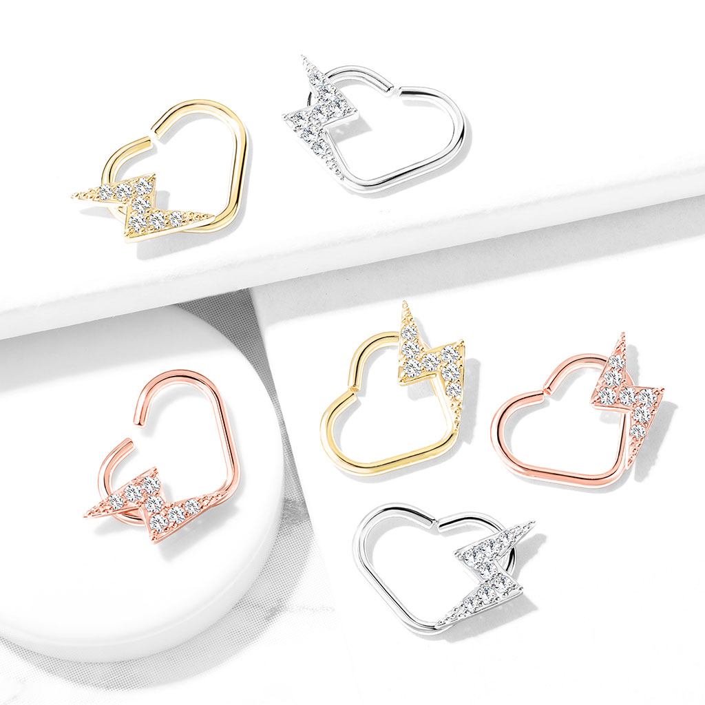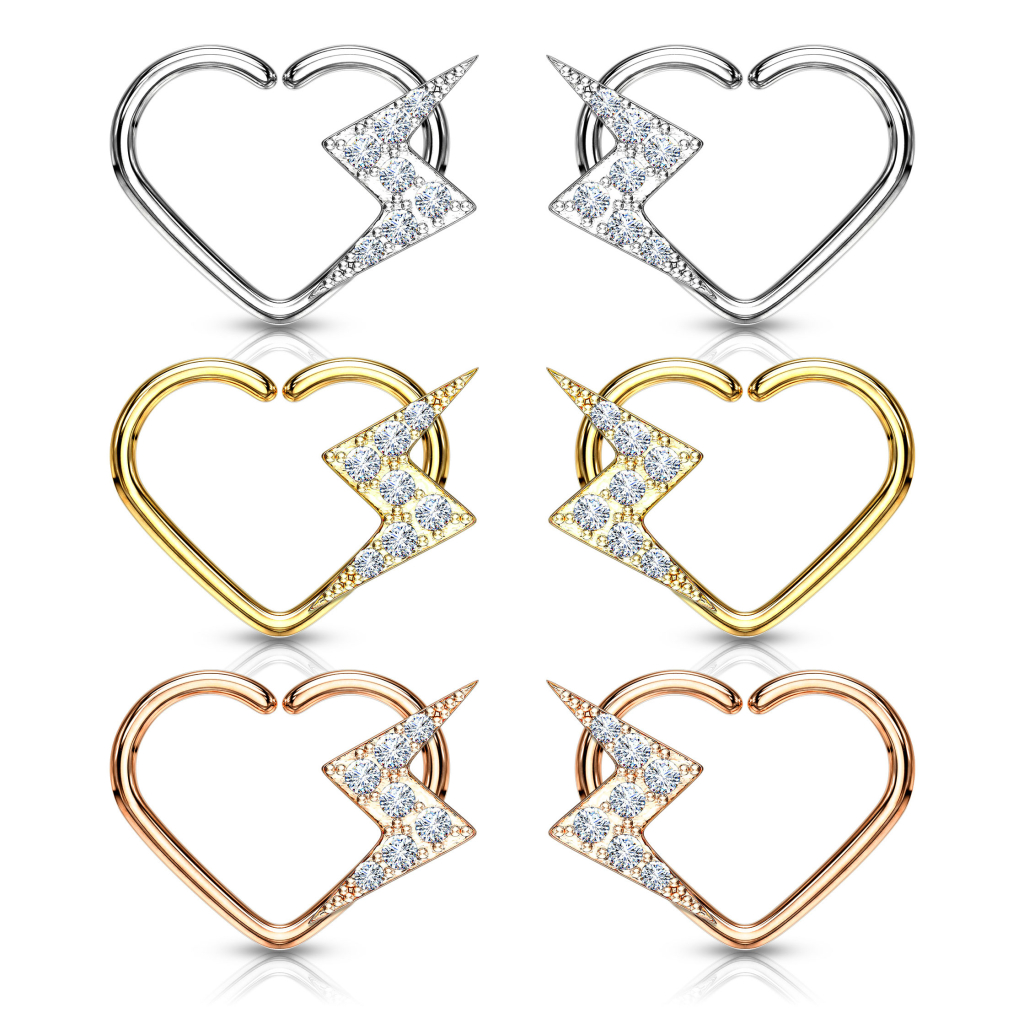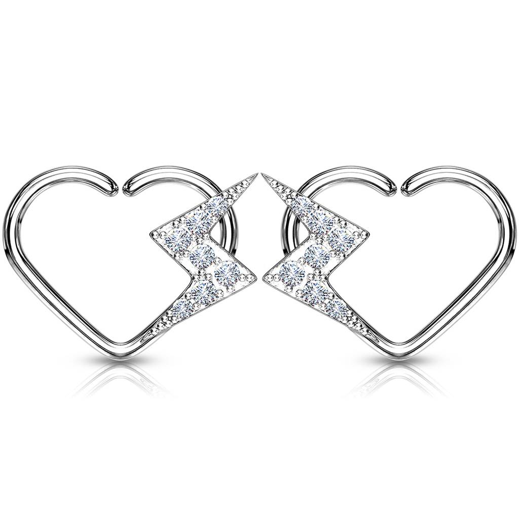 Piercing do ucha ve tvaru srdce s bleskem