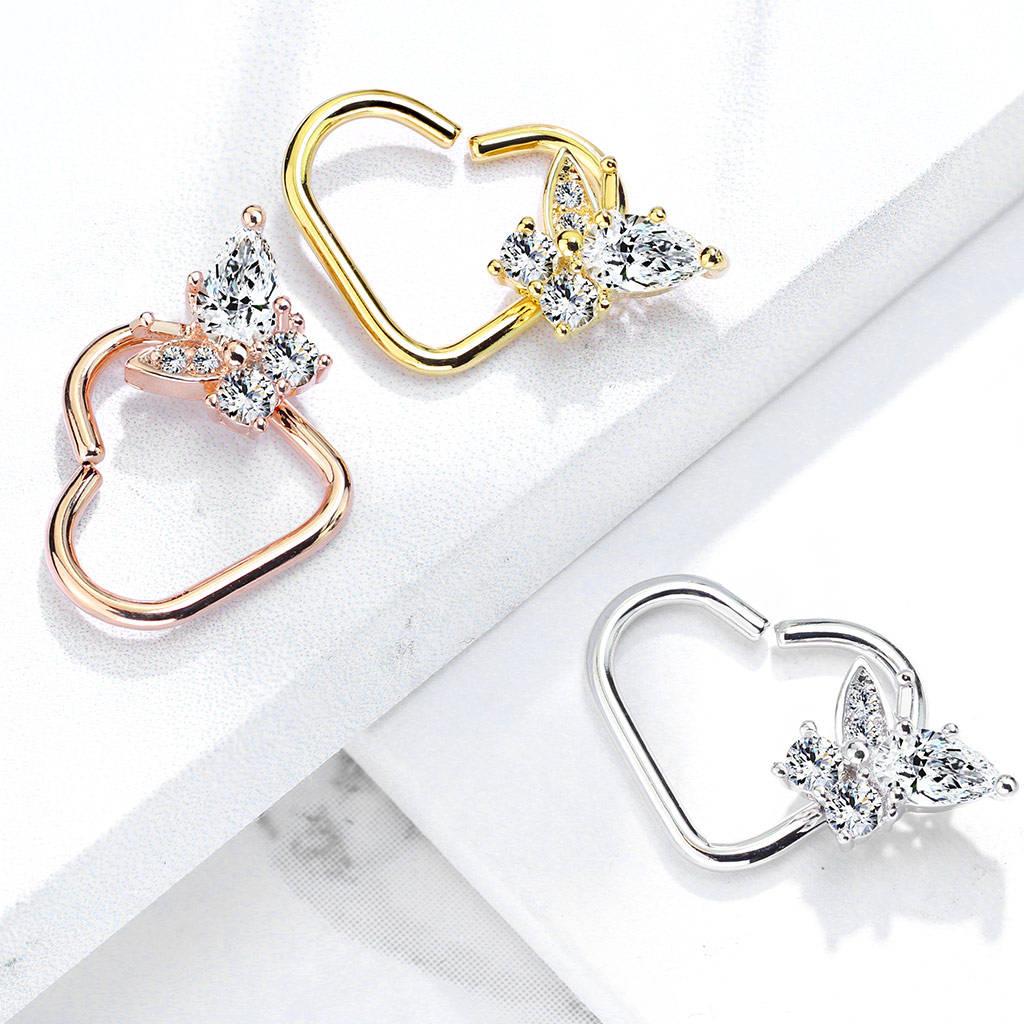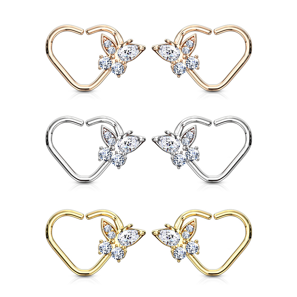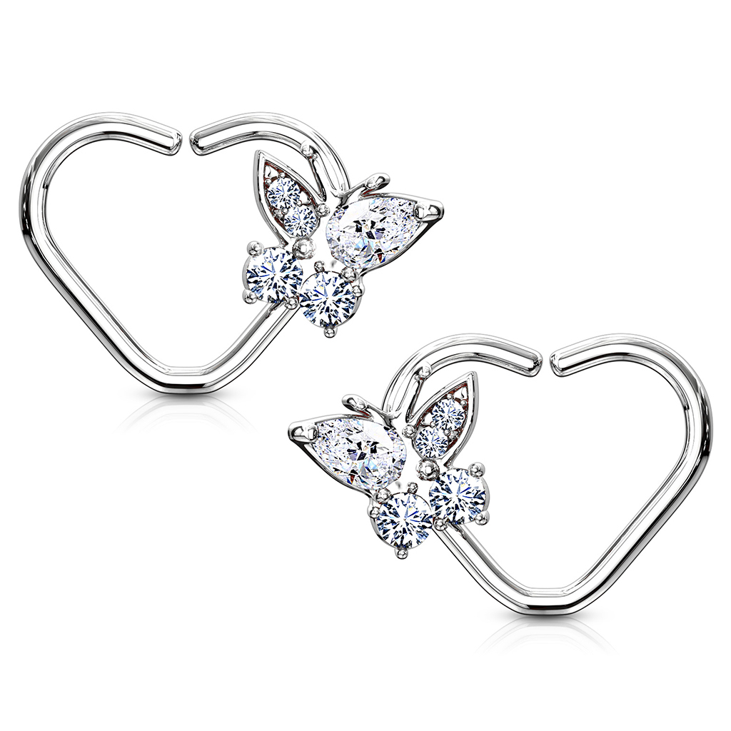 Piercing do ucha ve tvaru srdce s motýlem z kamínků