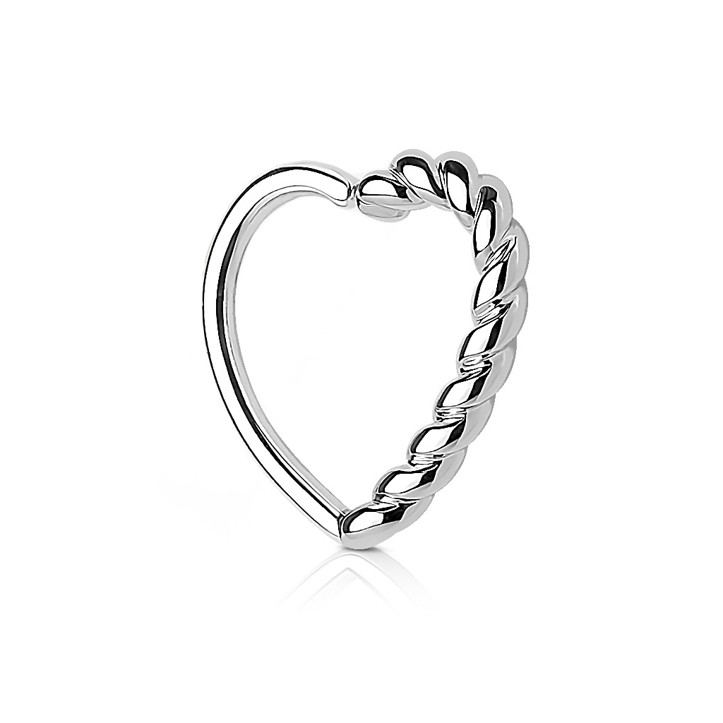 Piercing do ucha ve tvaru srdíčka s jednou stranou spletenou