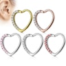 Piercing do ucha ve tvaru srdíčka s jednou stranou zdobenou kamínky