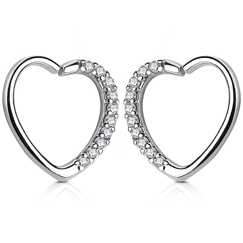Název: Piercing do ucha ve tvaru srdíčka s jednou stranou zdobenou kamínky