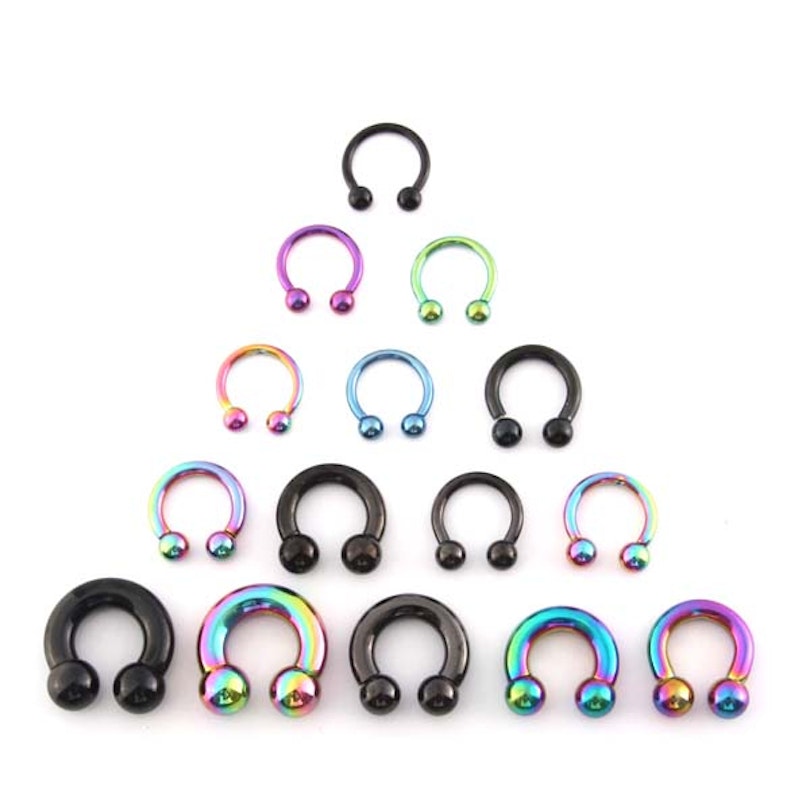 Pokud máte pocit, že byste potřebovali trošku obměnit vzhled Vaší roztažené piercingové dírky, a dodat jí nějakou barvu, teď máte skvělou příležitost toho docílit s touto nadrozměrnou podkovou, která je k dispozici o tloušťkách 2 mm a více. U této podkovy si můžete vybrat ze spousty různých barev, například máte k dispozici velmi žádané duhové provedení.