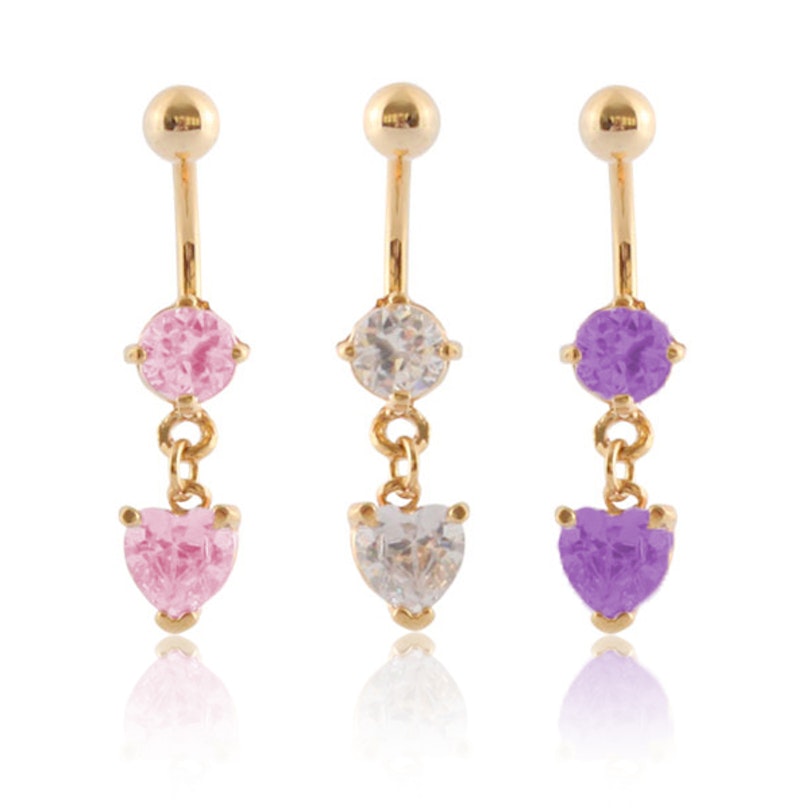 Název: Pozlacený piercing do pupíku s krystalem ve tvaru srdce