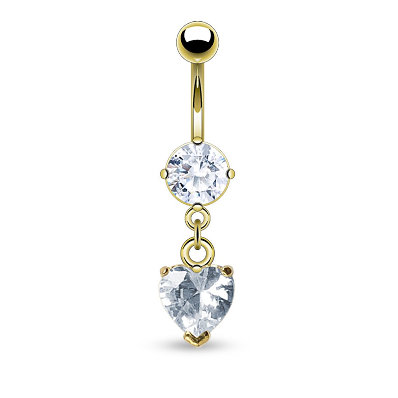 Pozlacený piercing do pupíku s krystalem ve tvaru srdce
