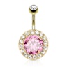 Pozlacený piercing do pupíku s velkým růžovým kamínkem