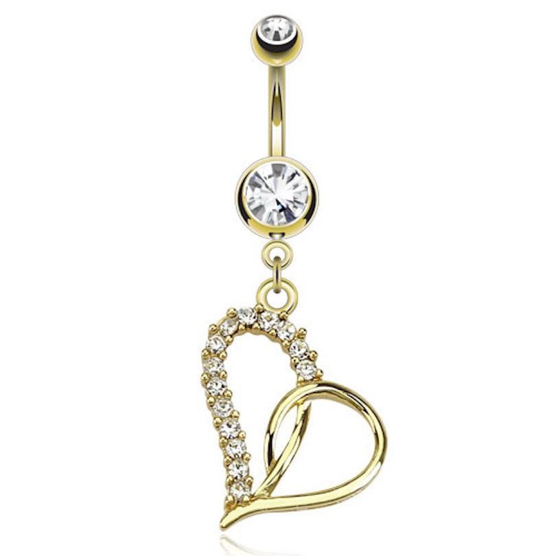 Pozlacený piercing do pupíku se srdíčkem a čirými kamínky