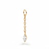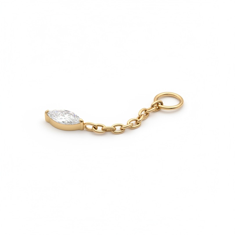 Tento přívěsek s oválným kamínkem je jednoduchý, ale není nudný. Oválný kamínek visí na tenkém titanovém řetízku a jemně se hýbe, čímž dodává vašim šperkům trochu života bez toho, aby to bylo příliš okaté. Je to detail, který se hodí kamkoliv. Kroužek přívěsku můžete nasadit na jakýkoliv svůj oblíbený piercingový kroužek, pokud není silnější jak 3 mm.