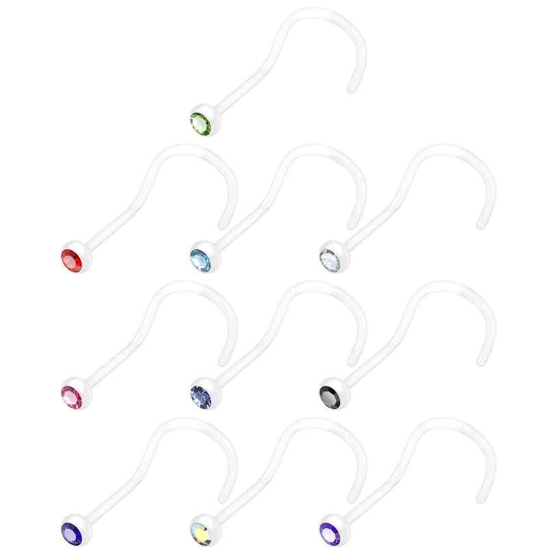 PTFE zahnutý piercing do nosu s kamínkem v různých barvách